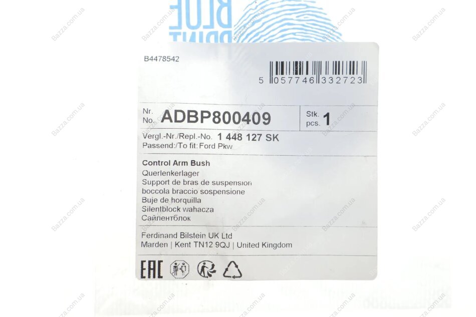 BLUE PRINT FORD С/блок важеля задньої підвіски зверху Focus II,III,C-Max,Kuga I,II,,Mazda,Volvo MAZDA 5 Blue Print adbp800409