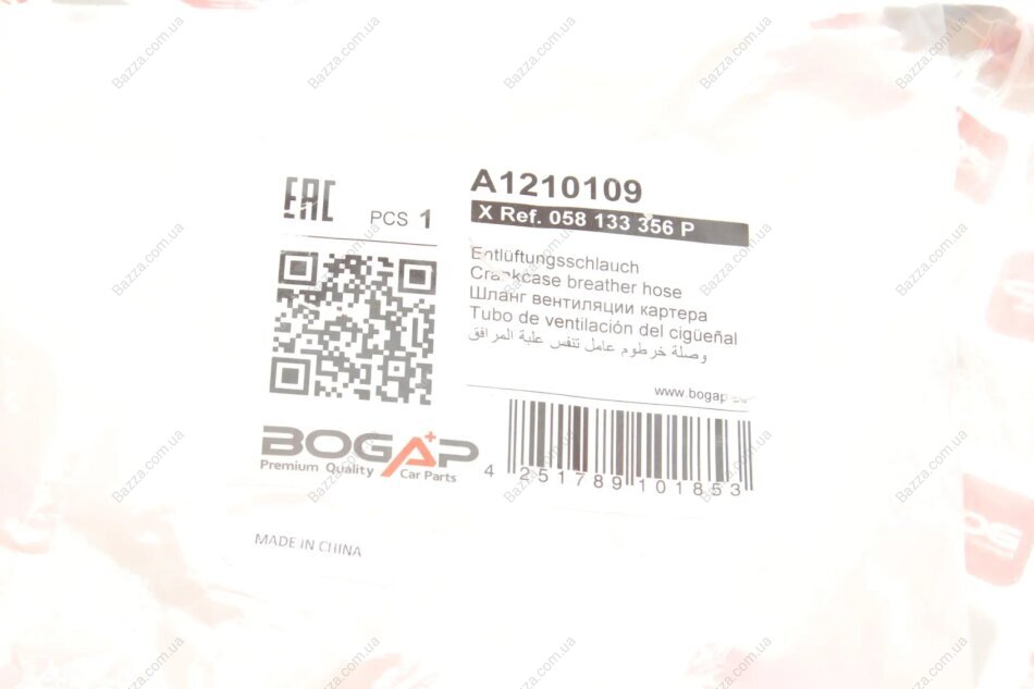 Патрубок вентиляції картерних газів Bogap a1210109