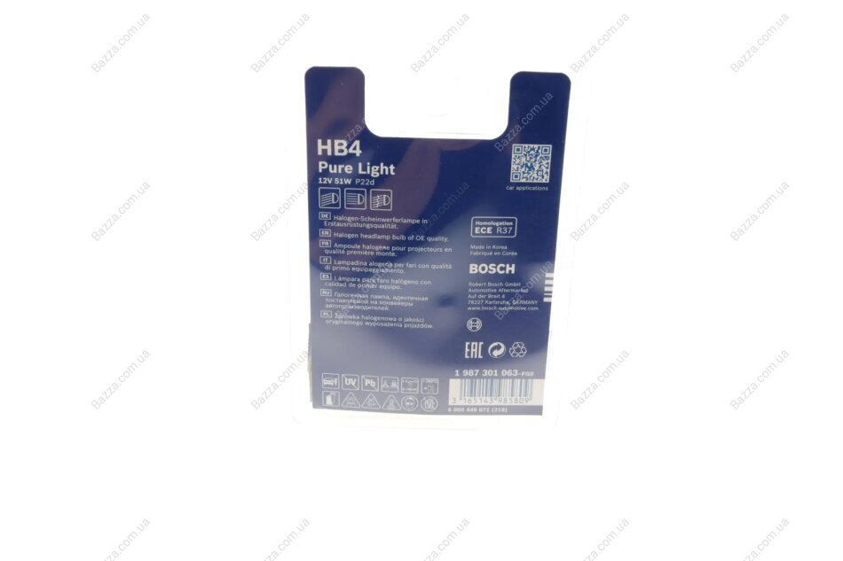 Лампа накаливания HB4 12V 51W P22d (пр-во Bosch) Bosch 1987301063