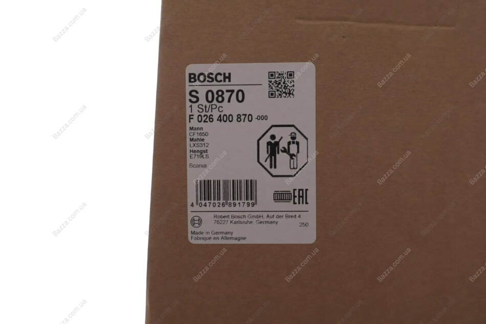 BOSCH S0870 MAN Фільтр вторинного повітря MERCEDES-BENZ Bosch f026400870