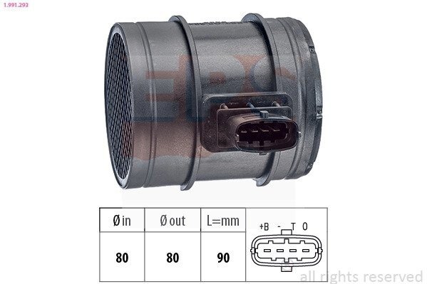 Розходомір повітря Alfa Romeo 159/ Fiat Croma, Ducato/ Lancia Thesis 2.3D, 2.4JTDM 09.05- EPS 1991293