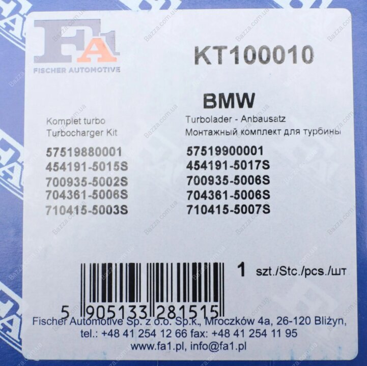 Аналоги "KT100010 FA1 (Fischer Automotive One)":