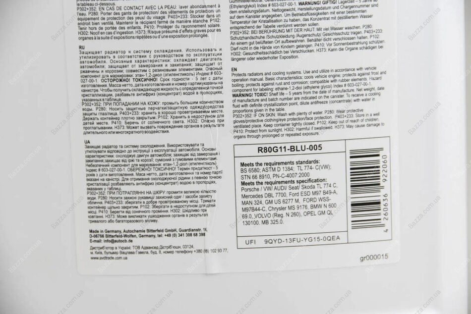 Спецификация: Deutz DQC CA-14, Ford ESD-M97B49-A, Iveco 18-1830, VW TL-774 C, Chrysler MS-7170, Fiat 9.55523, G11 (-35°C), Opel/GM GME L1301