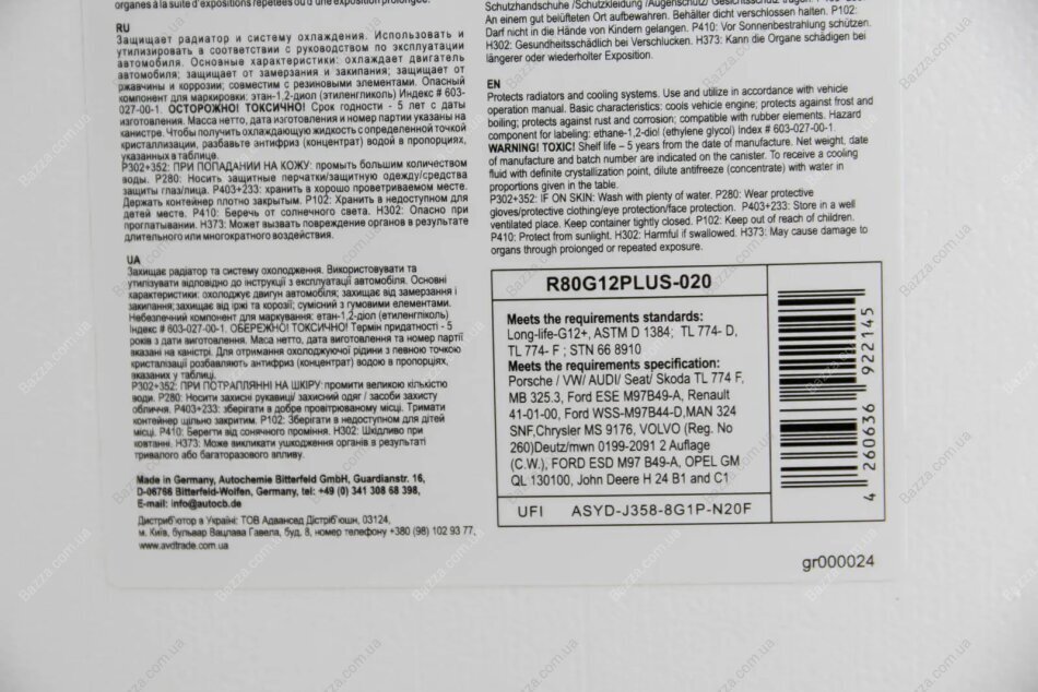 Спецификация: VW TL 774 D, G12 (-35°C)