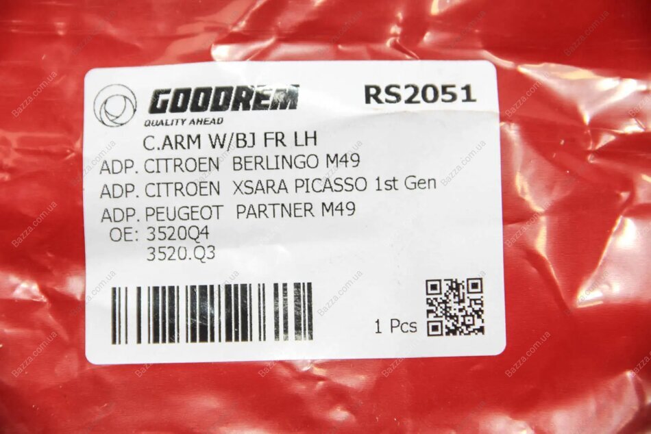 Важіль перед. Berlingo/Partner 2.0HDI 98- Л. (алюмін. с/б) Goodrem rs2051