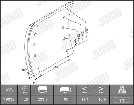 Тормозная колодка: 2. завышение размера, с серповидными накладками