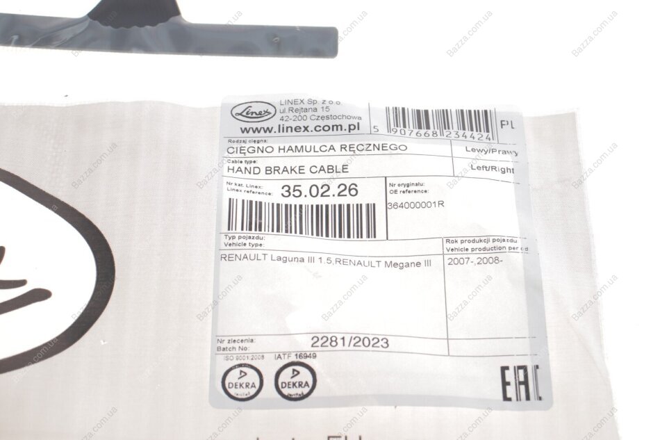 Трос ручника Linex 350226
