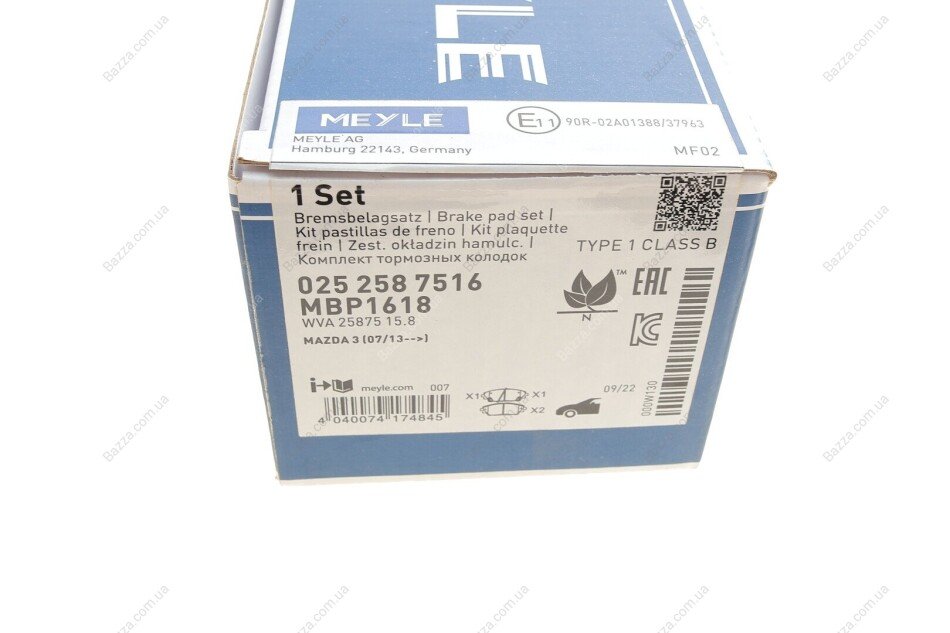 Комплект гальмівних колодок Meyle 0252587516