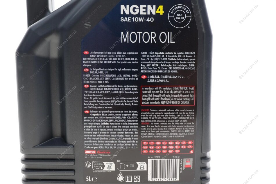 Олива моторна синтетична д/авто MOTUL NGEN 4 10W40 5L Motul 387806