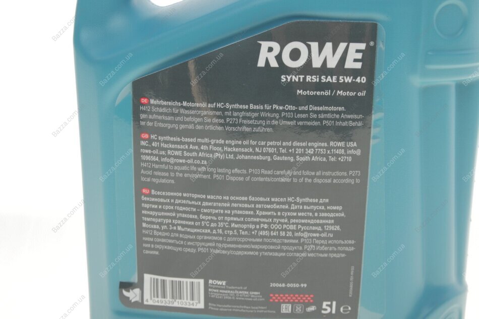 Олива моторна HIGHTEC SYNT RSi SAE 5W-40 (5 L) Rowe 20068005099