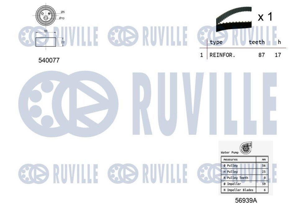 RUVILLE RENAULT К-т ГРМ (помпа+ремень+ролик) Kangoo 1.2 Ruville 5500101
