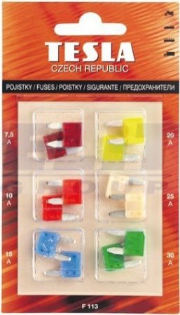 Предохранитель мини (к-т 12 шт. 7,5А - 2 шт., 10A - 2 шт., 15A - 2 шт., 20A - 2 шт. 25A - 2 шт. 30A - 2 шт.) бл. уп. Tesla f113
