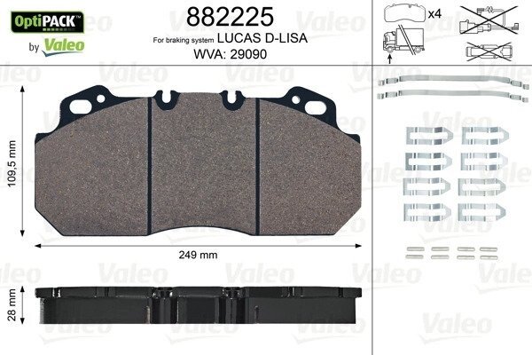 Комплект тормозных колодок, дисковый тормоз, RVI Magnum Premium 249x110x28 Valeo phc 882225
