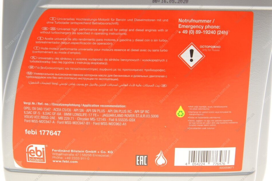Моторное масло 0w20 Febі Bilstein 177647