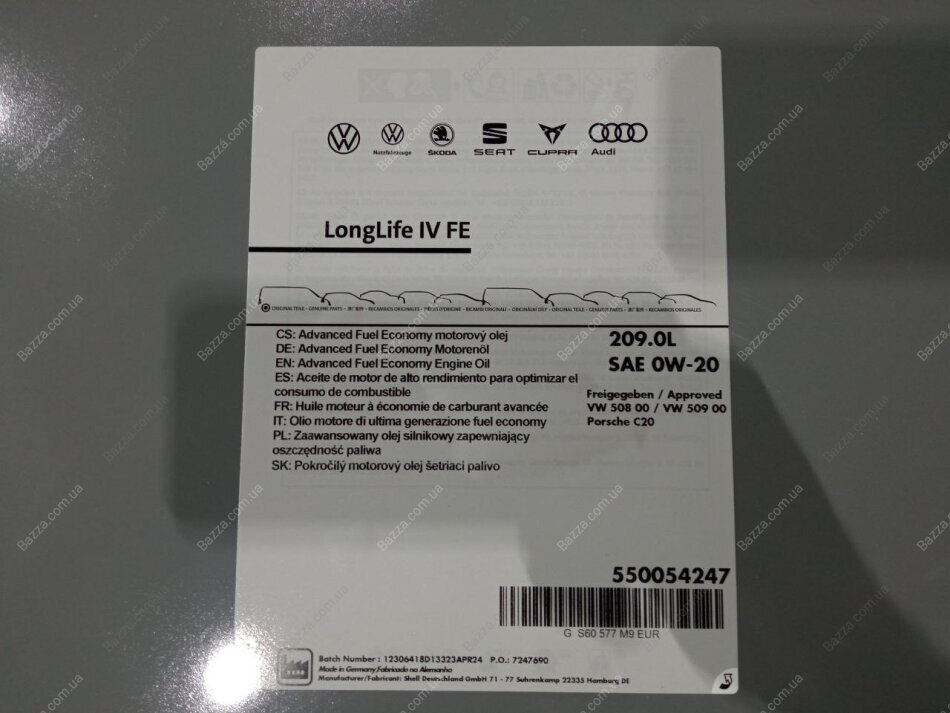 Моторное масло 0w20 VAG gs60577m9