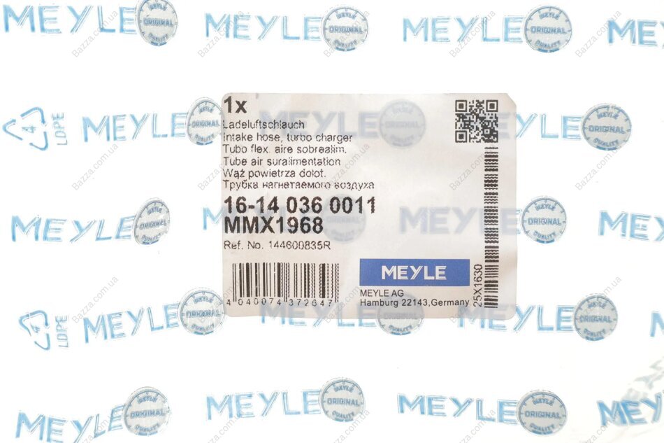 Патрубок интеркулера (турбины) Meyle 16140360011