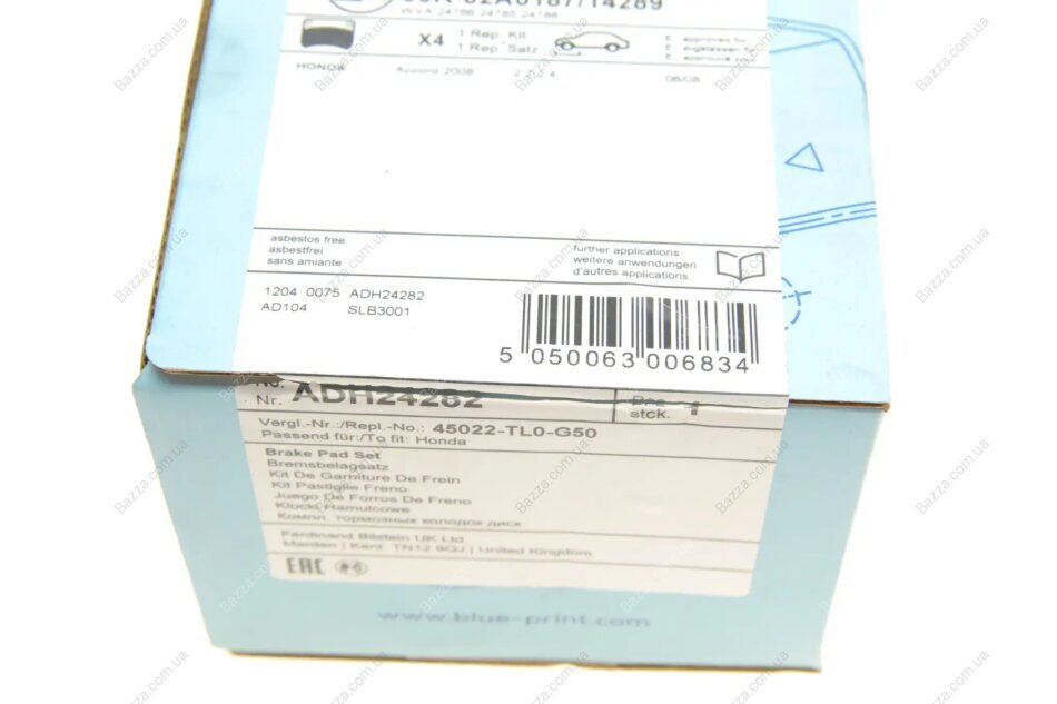 Передние тормозные колодки Blue Print adh24282