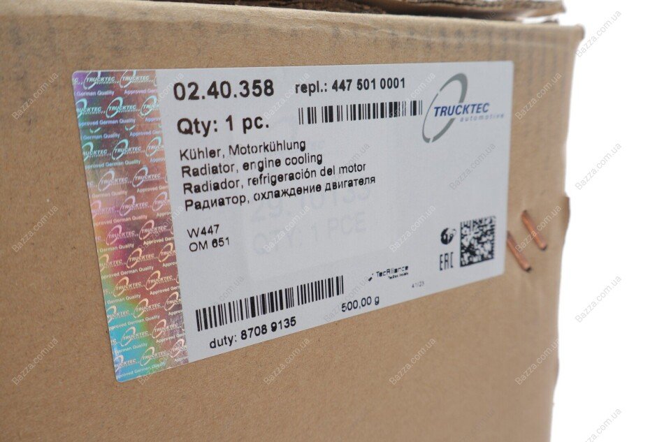 Радиатор охлаждения двигателя Trucktec Automotive 0240358