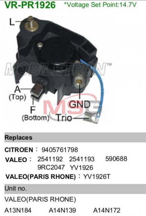 Реле-регулятор напряжения генератора Mobiletron vrpr1926