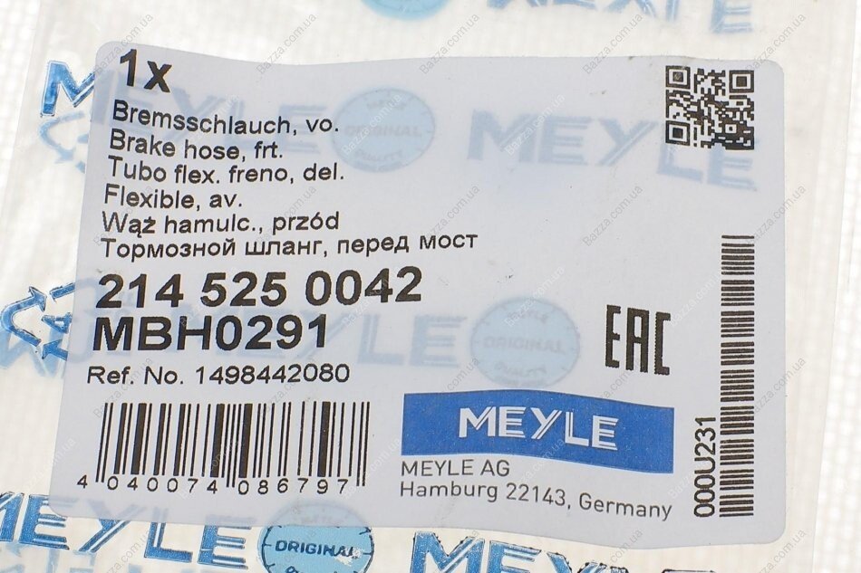 Шланг тормозной передний Meyle 2145250042