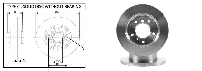 Тип тормозного диска: цельный