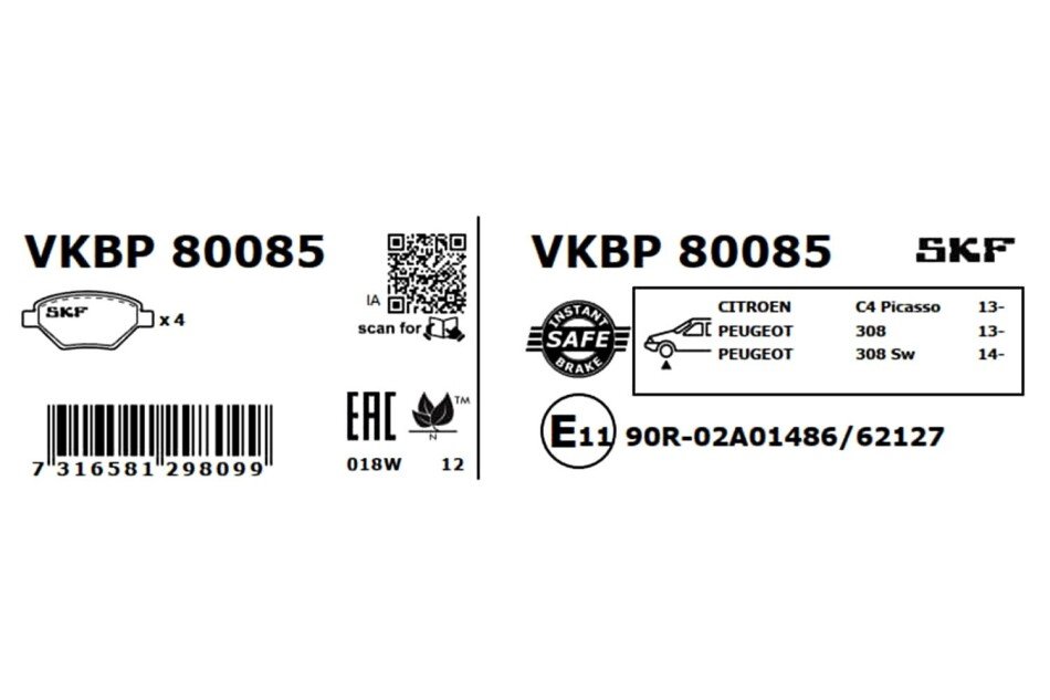 Тормозные колодки SKF vkbp80085