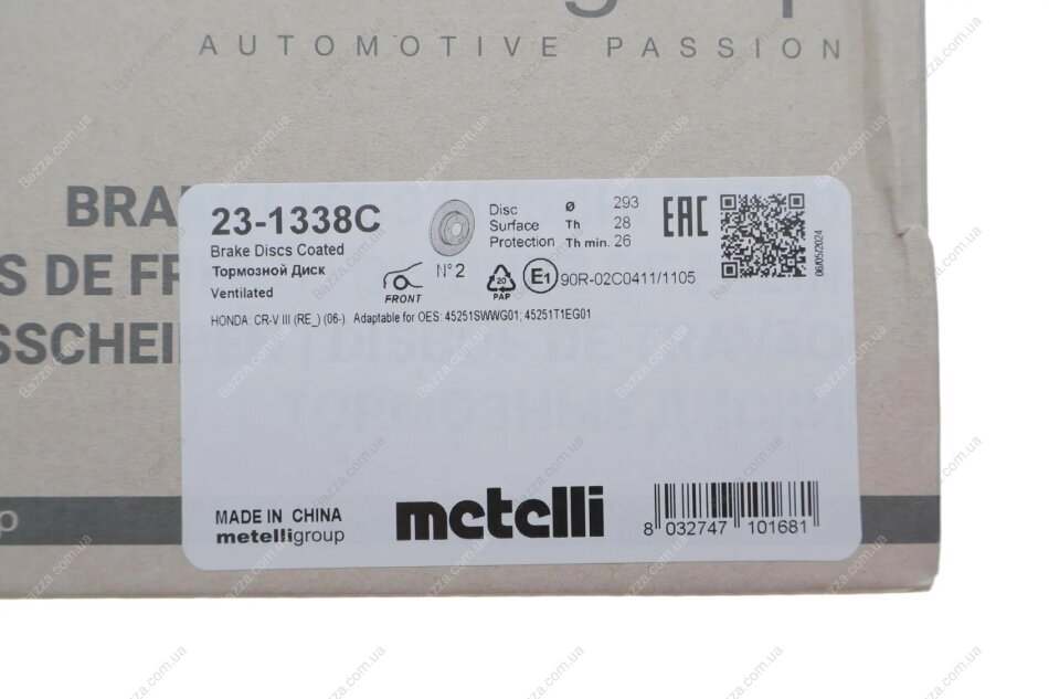 Вентилируемый тормозной диск Metelli 231338C