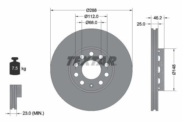 Вентилируемый тормозной диск Textar 92057603