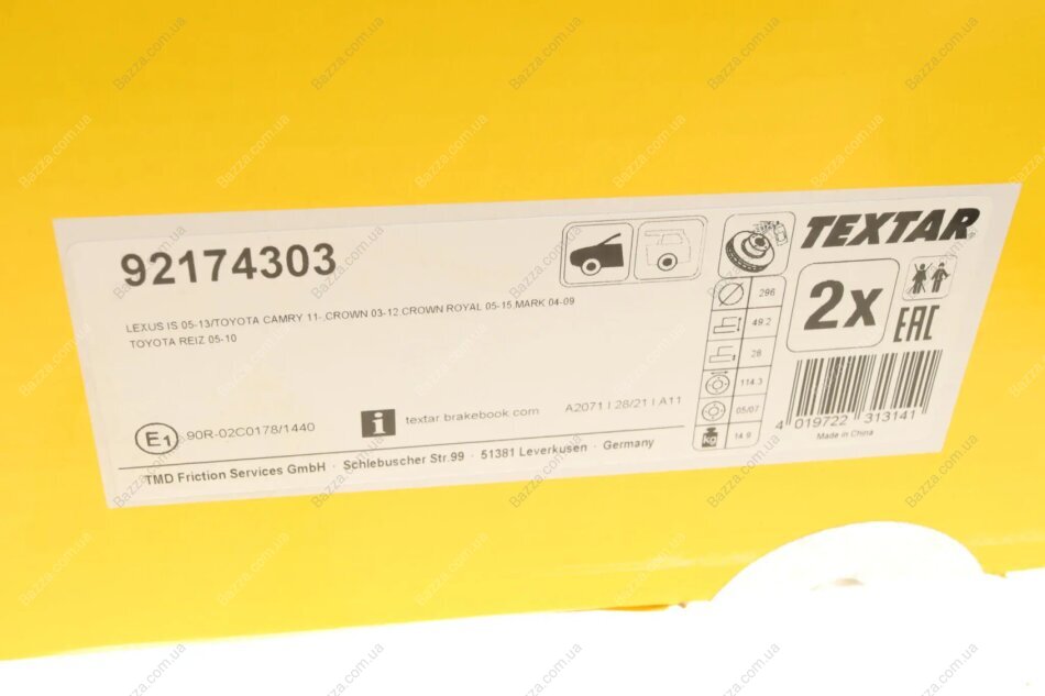 Аналоги "92174303 Textar":