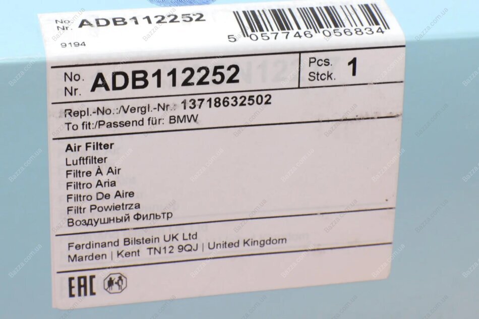 Фільтр повітряний Blue Print adb112252