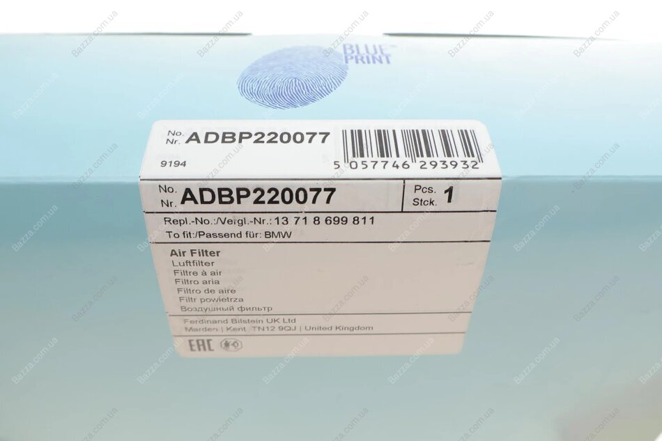 Фільтр повітряний Blue Print adbp220077