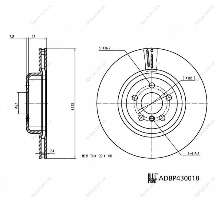 Товщина гальмівного диску (мм): 24