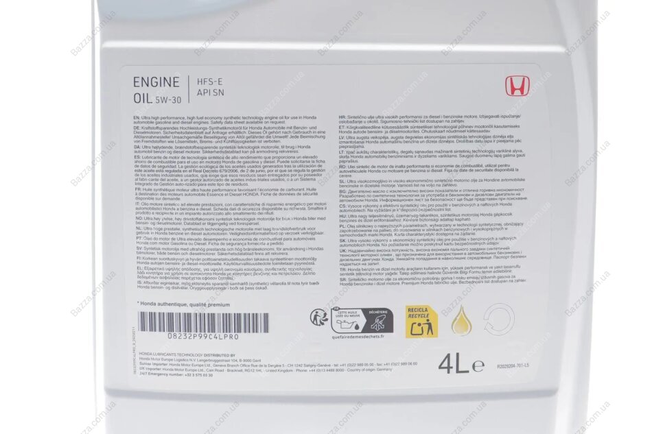 ОЛИВА МОТОРНА HONDA HFS-E 5W-30, 4Л Honda 08232P99C4LPRO