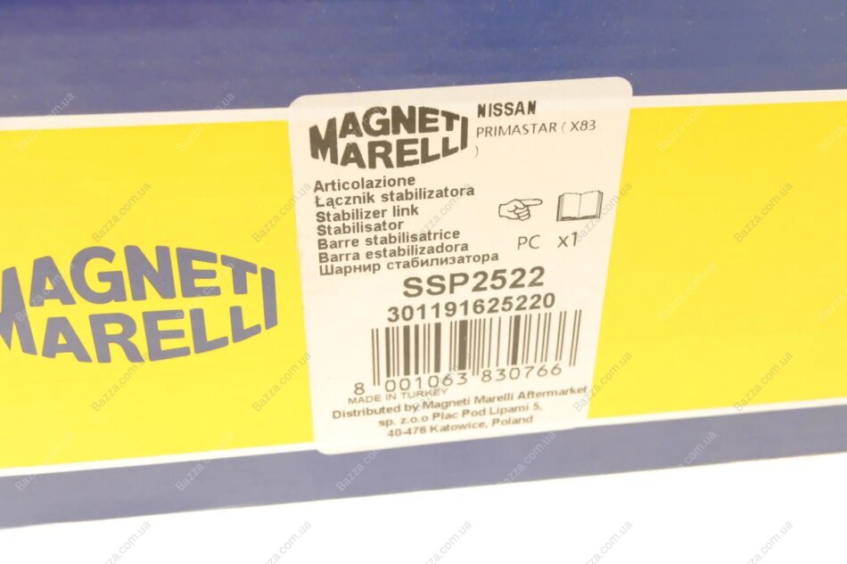 Тяга стабилизатора OPEL VIVARO, RENAULT CLIO III, TRAFIC II 01- перед.мост (Пр-во MAGNETI MARELLI) Magneti Marelli 301191625220