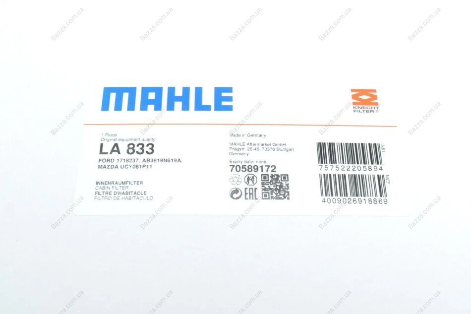 Аналоги "LA833 Mahle knecht":
