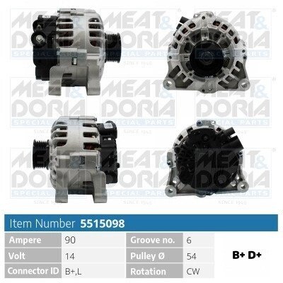 MEATDORIA CITROEN Генератор BERLINGO / BERLINGO FIRST 2.0 HDI 90 99-05, FIAT DUCATO 2.8 JTD 01-, LANCIA ZETA 2.0 16V 00-02 Meat & Doria 5515098