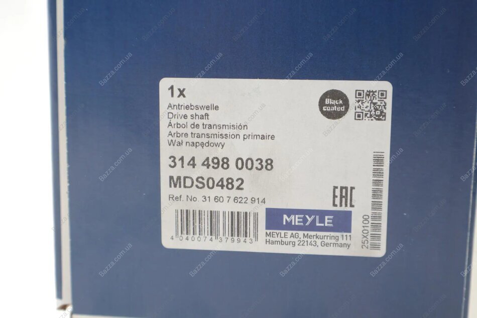 Вал приводний BMW X5 (E70) (02/06-07/13), X5 (F15) (08/13-07/18), X6 (E71), X6 (F16) (вир-во MEYLE) Meyle 3144980038