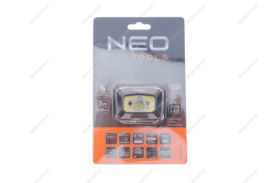 Налобний ліхтар з акумулятором USB 250 lm COB LED + датчик руху NEO TOOLS 99073