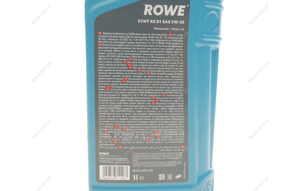 Олива моторна HIGHTEC SYNT RS D1 SAE 5W-30 (1 L) Rowe 20212001099