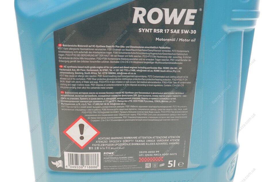 Олива моторна HIGHTEC SYNT RSR 17 SAE 5W-30 (5 L) Rowe 20370005099