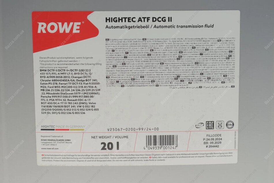 Олива трансмісійна HIGHTEC ATF DCG II (20 L) Rowe 25067020099