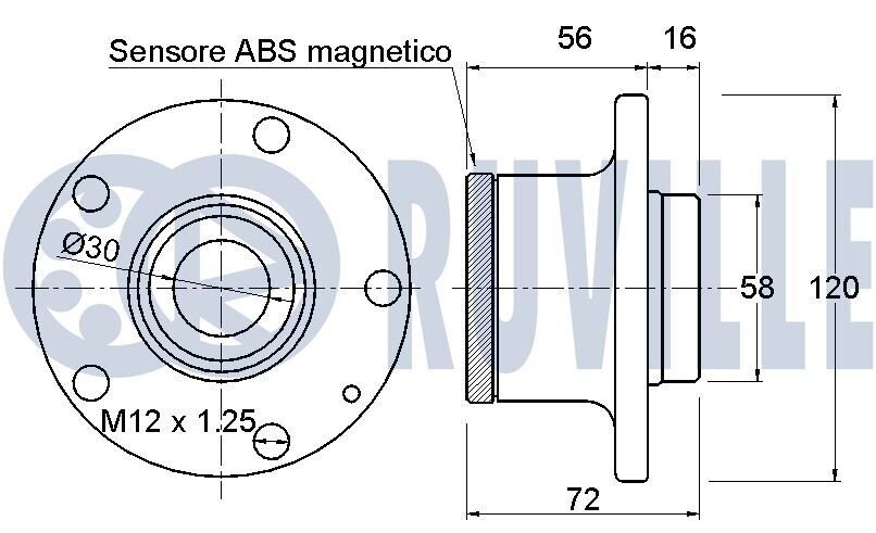 RUVILLE FIAT Ступица задн. с датчиком ABS Doblo 10- (120мм) Ruville 221561