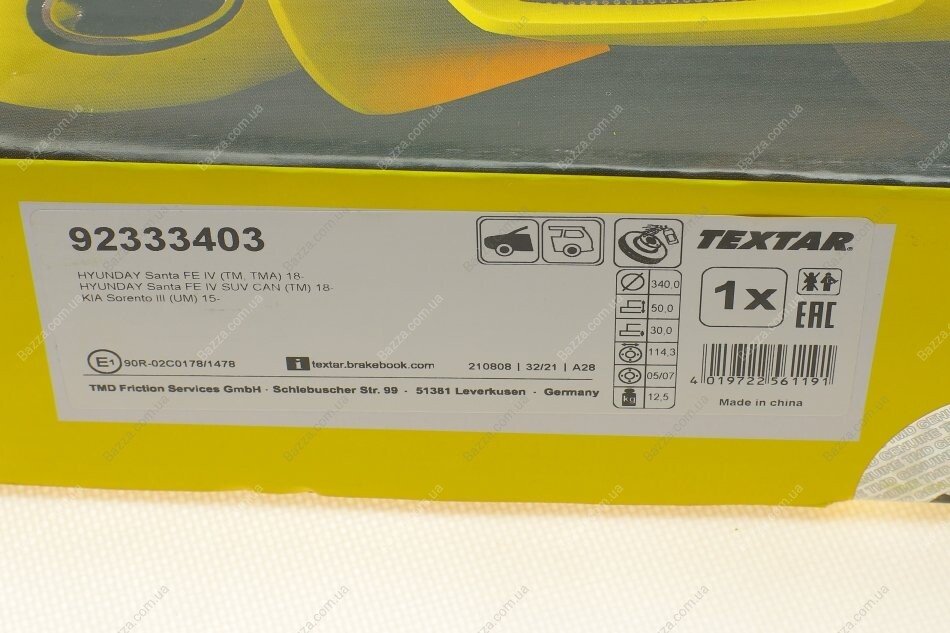 Аналоги "92333403 Textar":
