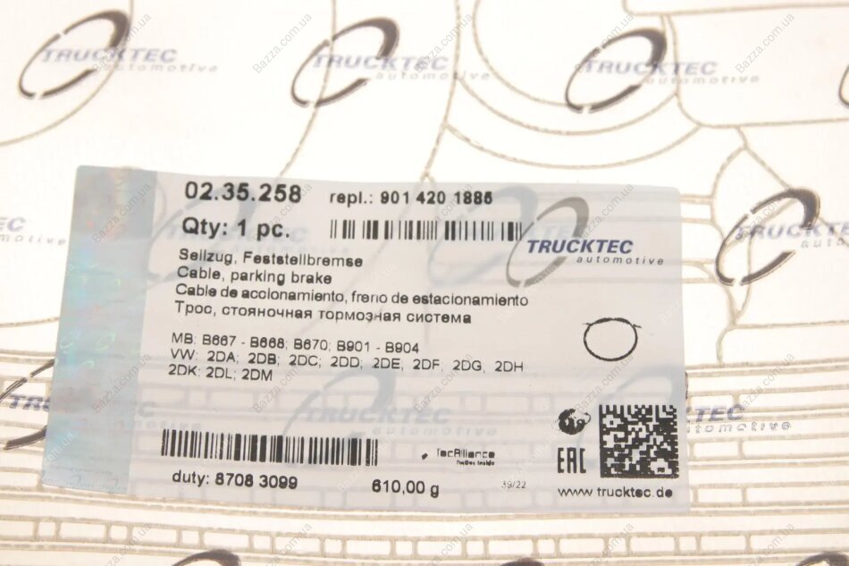 Трос ручника Trucktec Automotive 0235258