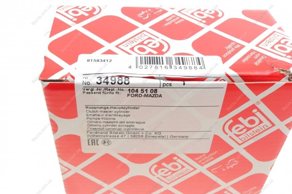 Головний циліндр зчеплення Febі Bilstein 34988