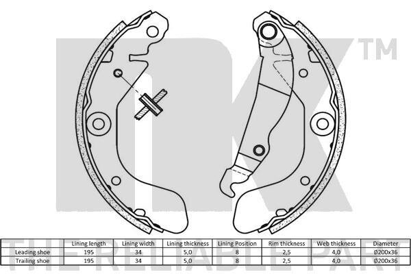 Колодки ручного (стоячого) гальма NK 2736857