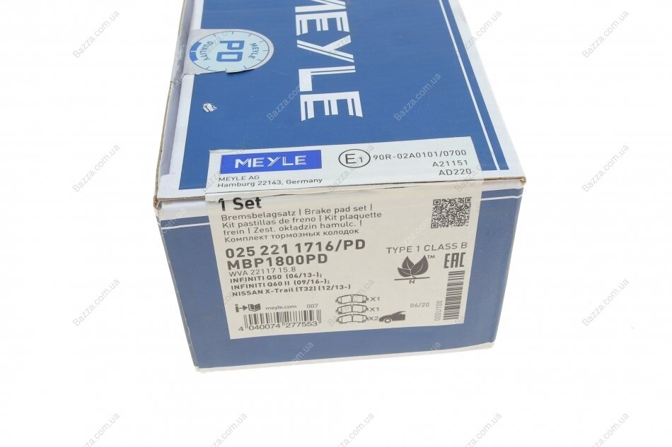 Передні тормозні (гальмівні) колодки Meyle 0252211716PD