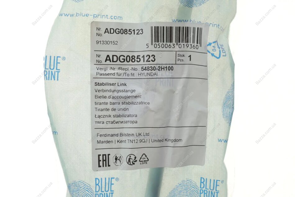 Стійка (тяга) стабілізатора передня Blue Print adg085123