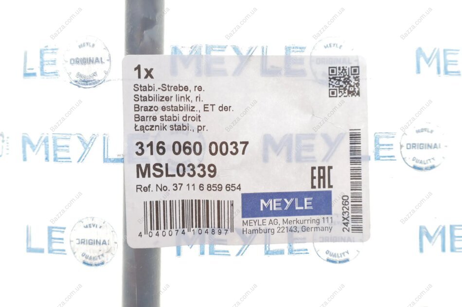 Стійка (тяга) стабілізатора передня Meyle 3160600037