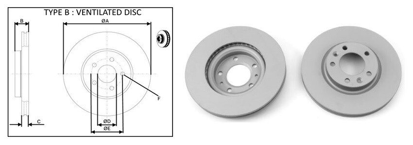 Тип гальмівного диска: вентильований